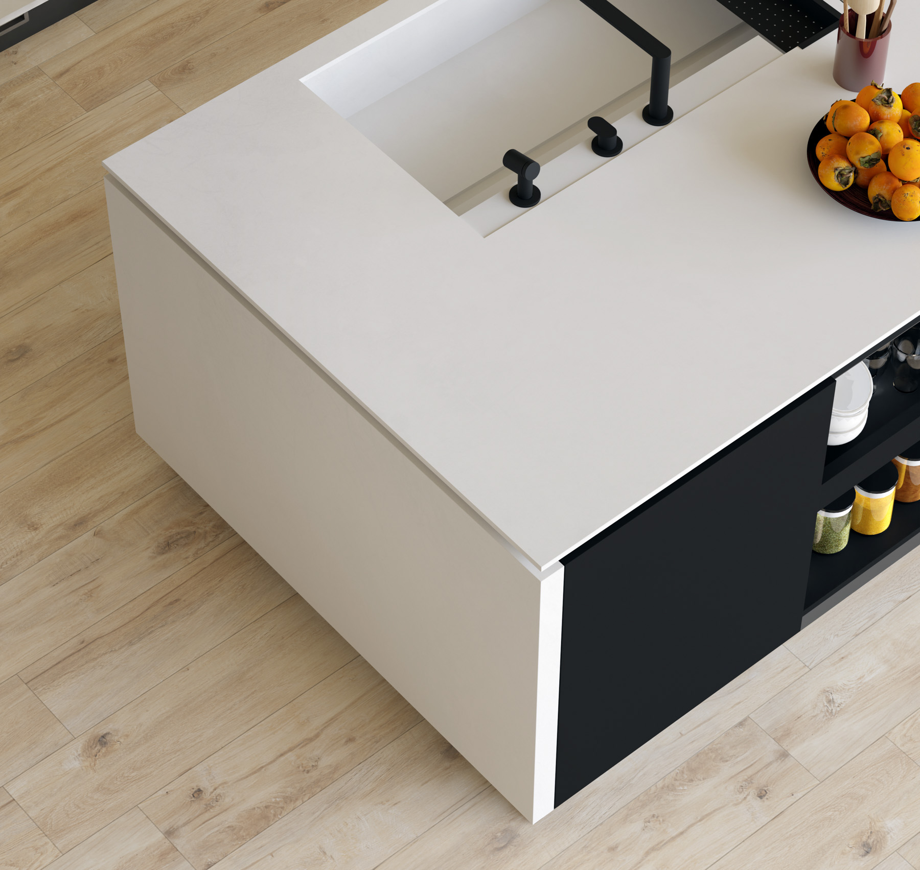 Total White è una proposta dedicata esclusivamente a EKXTRA 12 mm. Il bianco puro domina la superficie, con un effetto cemento chiaro, uniforme e continuo. Pensata per la cucina, è ideale per chi cerca pulizia visiva ed essenzialità.